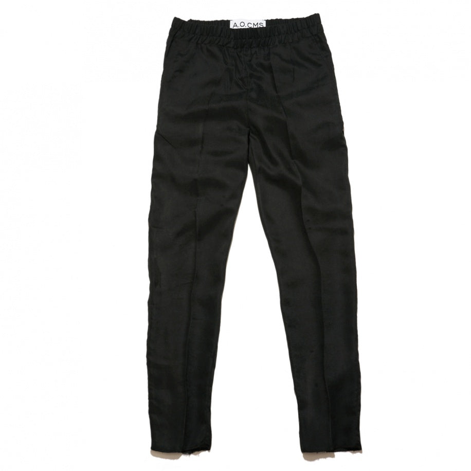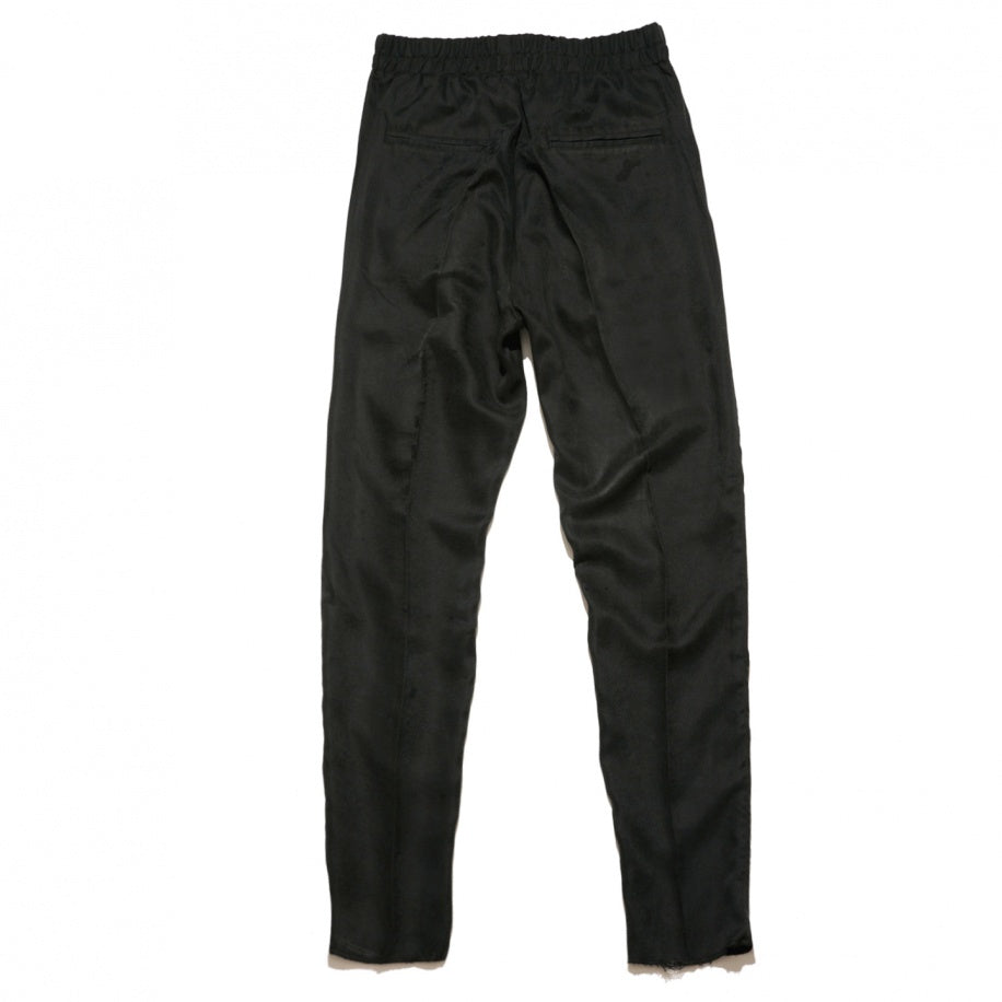 Modal mix pant with 71% modal and 29% polyester with peech finish. Twill woven. Loose cut pant with elastic waistband for comfort wearing. Slanted side pockets. Leg with raw length.