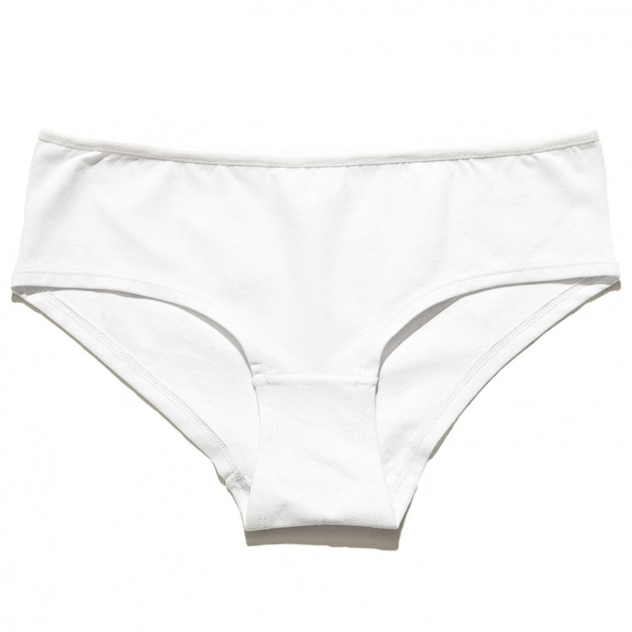 Smooth hipster with folded bottom edge. Soft elastic binding at the waist and cotton crotch lining. 95% Cotton, 5% Lycra.