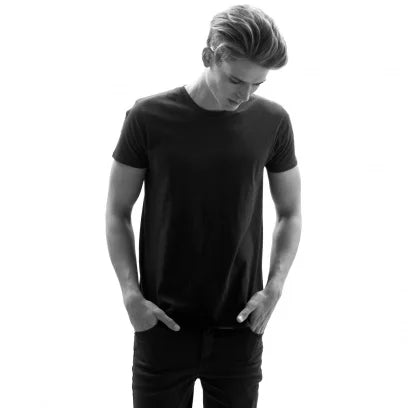 The essential crew-neck t-shirt. Clean cut, light jersey, blind stitched sleeve and bottom hems. 100% Cotton (Black, Navy & White), 60% Cotton & 40% Polyester (Grey Melange)