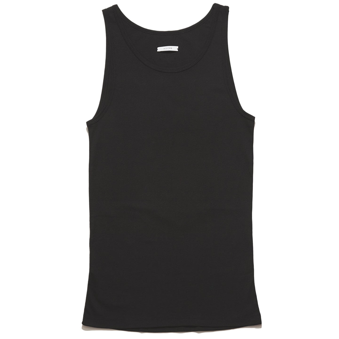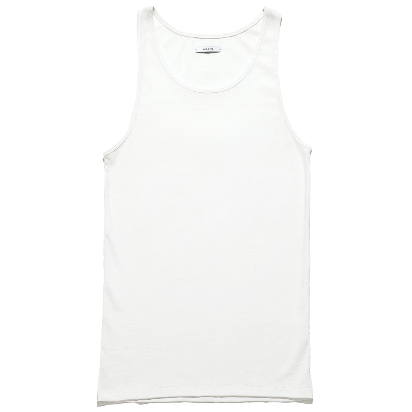 The standad of all tank tops. 1x1 rib, binding on neck and sleeve openings, flatlocked side seam. 100% Cotton.